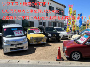 | 事業内容 | 新車・中古車販売、買取、修理、鈑金、ベビーカー・チャイルドシートクリーニング、カーコーティング、カークリーニング、タイヤ販売・交換、オイル交換、各種ケミカル商品取扱、エンジン載替、各種カスタマイズ |