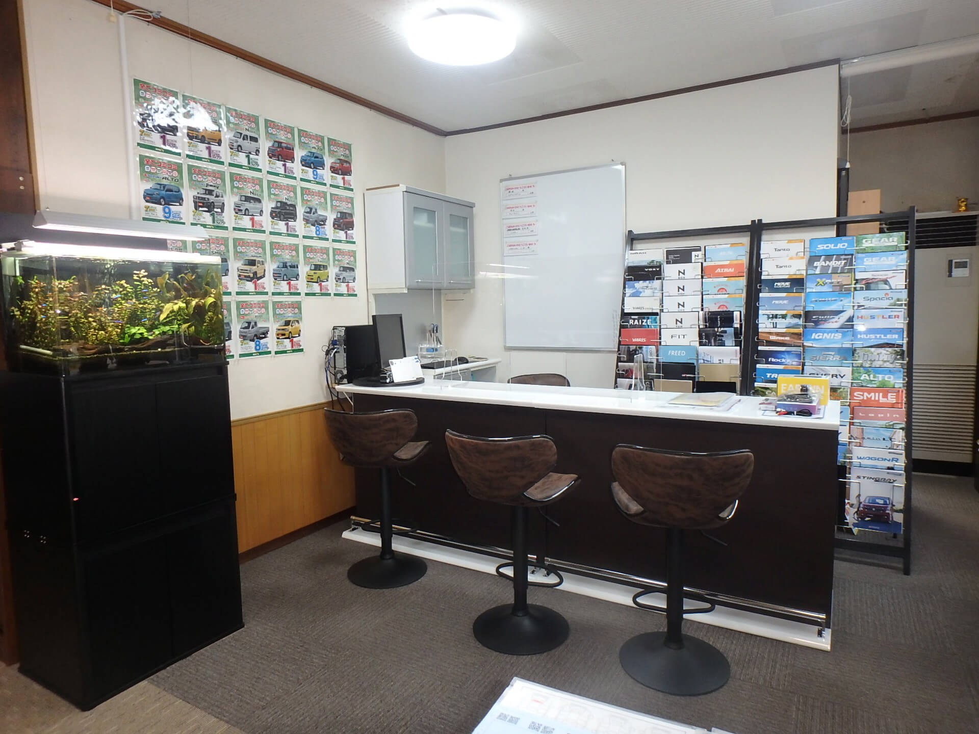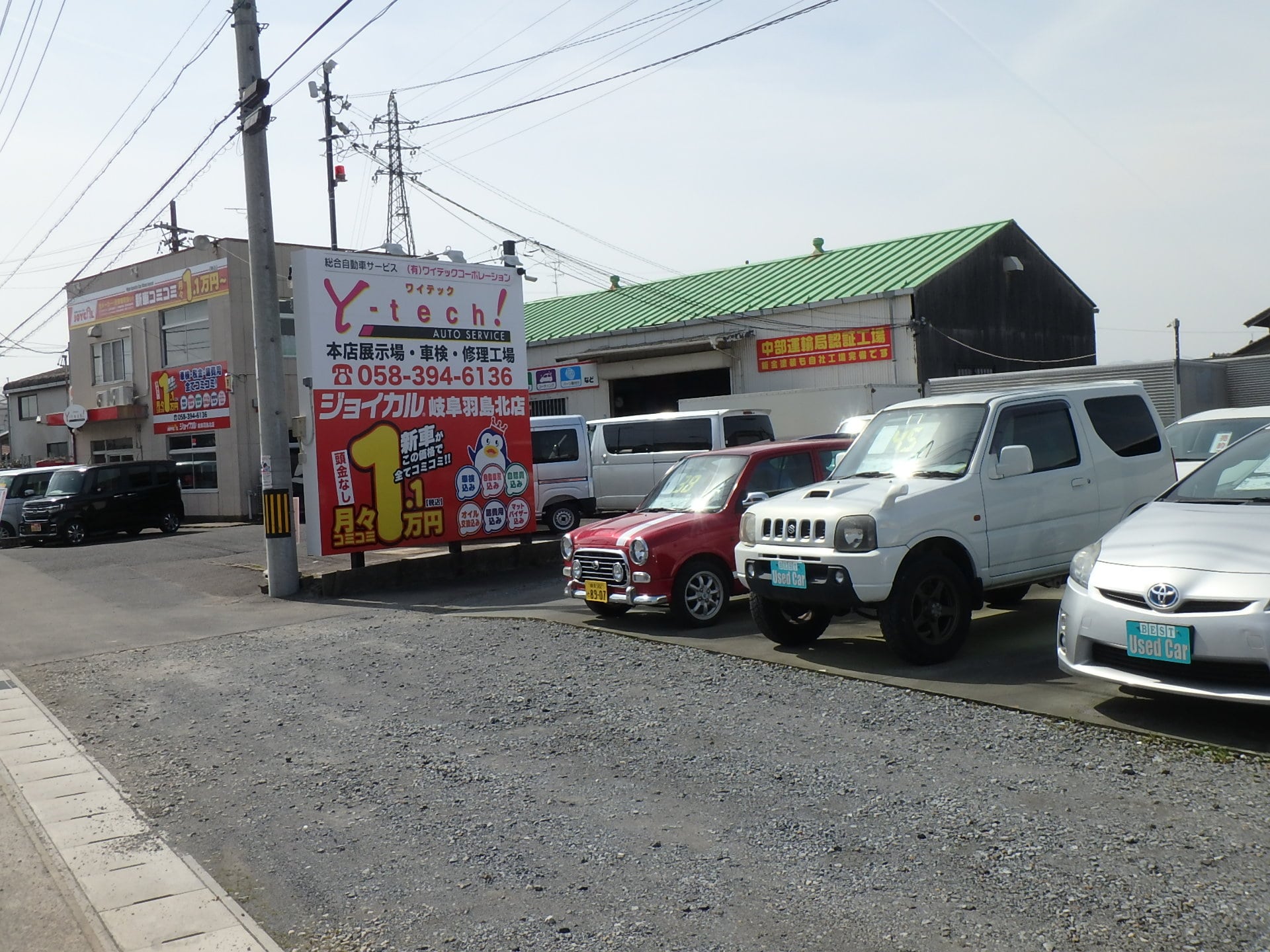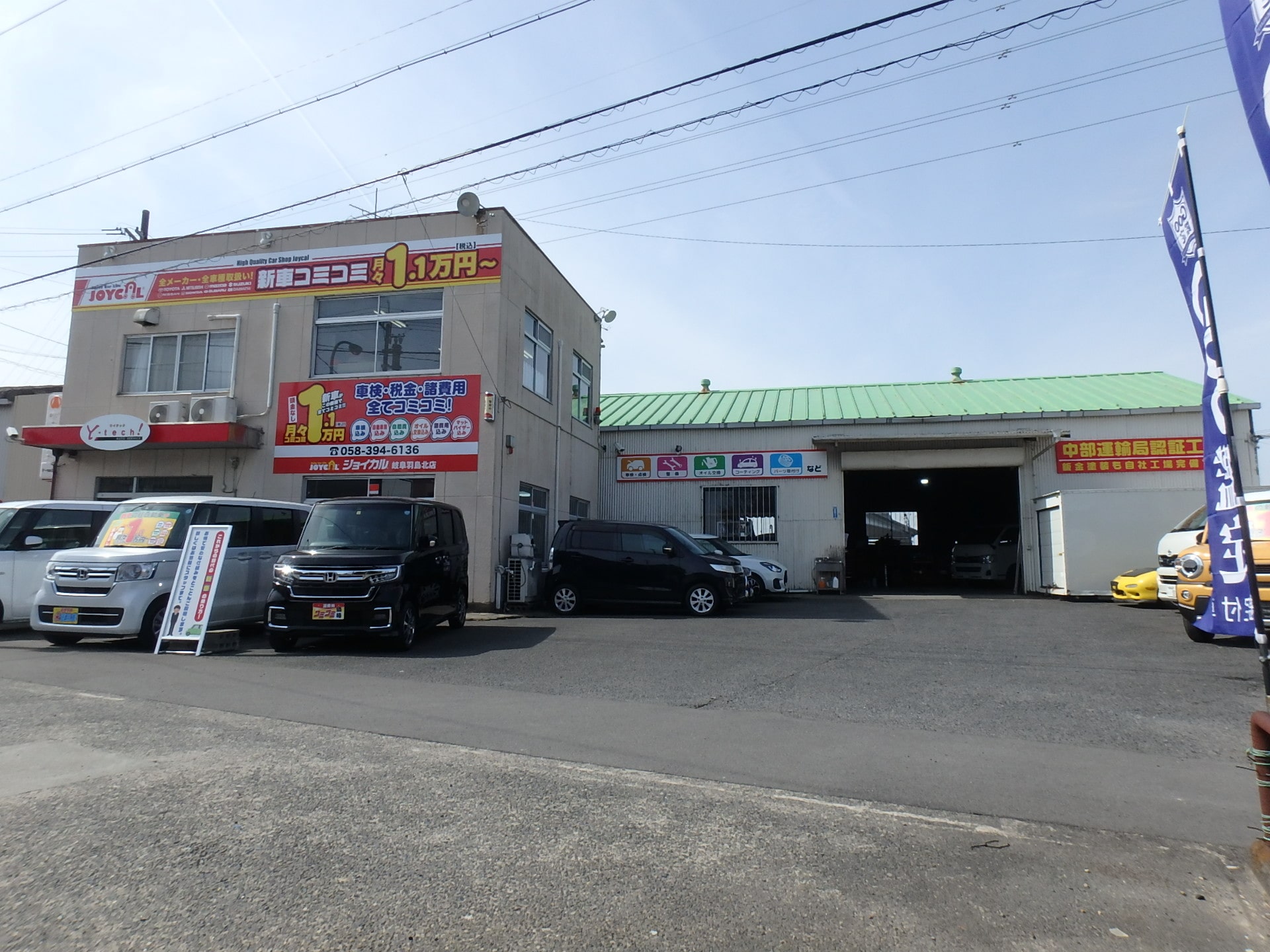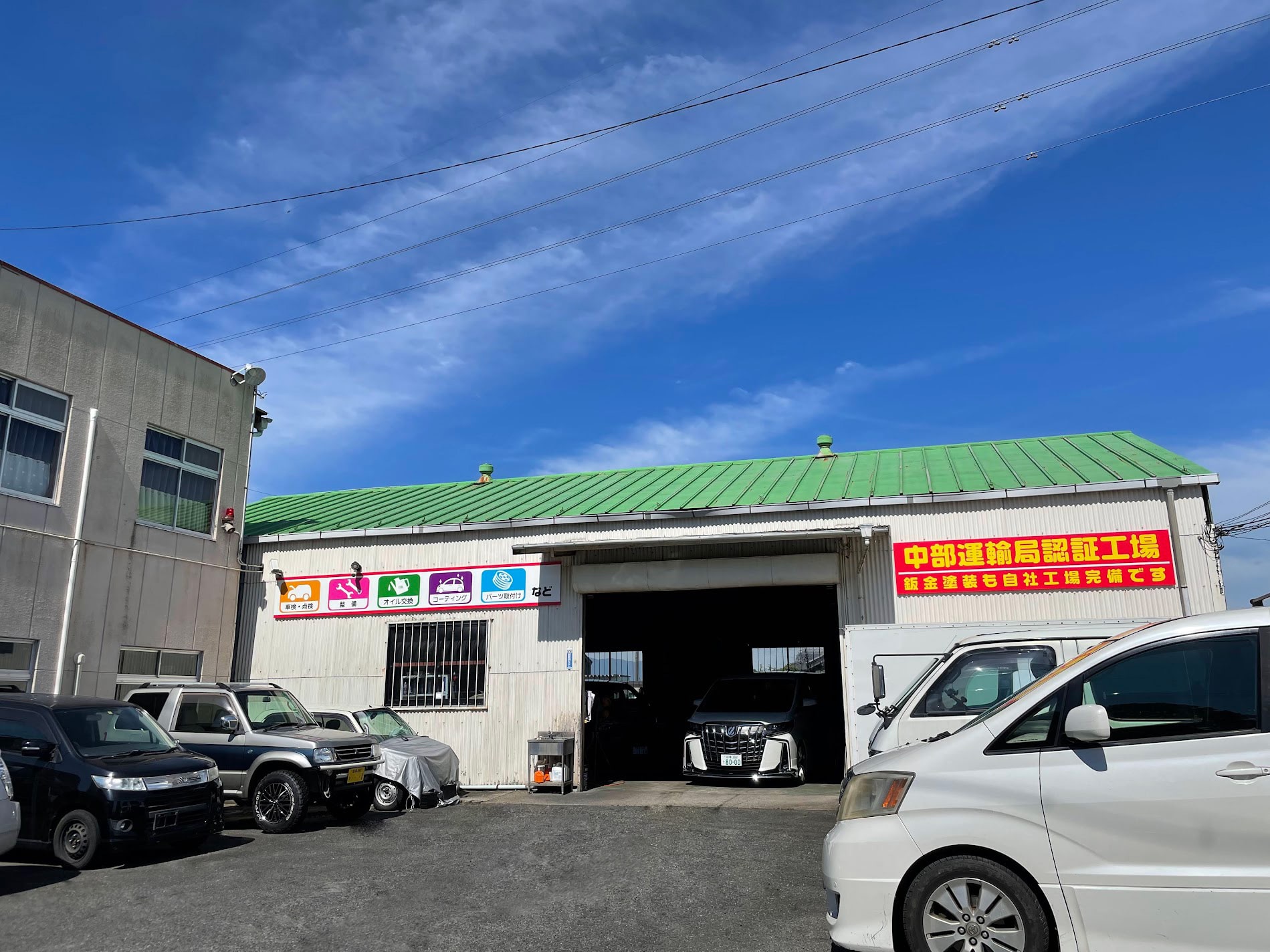 | 工場・設備 | 自社認証工場完備(中部運輸局認証工場)、リフト4機、タイヤチェンジャ-完備、自社塗装工場完備 |