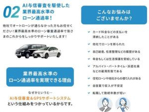 オートローンが組めなくてお困りの方も貴方の将来性で審査させて頂きます。ローン審査に不安な方もお気兼ねなくご相談ください。もちろん軽自動車、普通自動車、黒ナンバーや営業ナンバーもOKです!