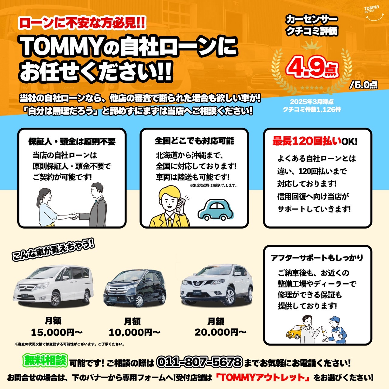 他店の審査で断られた場合も欲しい車が!「自分は無理だろう」と諦めずにまずはご相談ください!