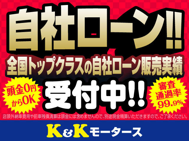 全国トップクラスの自社ローン販売実績!当社の自社ローンは99.9%購入可!過去の事情でお車の購入をあきらめている方、まずはK&Kモータースにご相談ください!