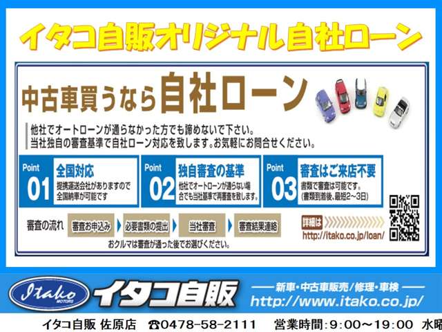 当店独自システムの自社ローン!審査に通らない方でも諦めないでください。詳細はお気軽にお問い合わせください!