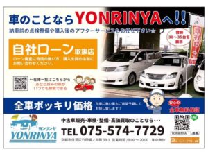 自社ローンをお願いしました。大阪からでしたが、お店の方の対応が非常に良く安心して購入できました!車も綺麗で丁寧な仕事をされるのだなと感心いたしました。オートローンが通らず困っていましたがYONRINYAさんで購入できて良かったです。次の車もYONRINYAさんでお願いしようと思ってます!