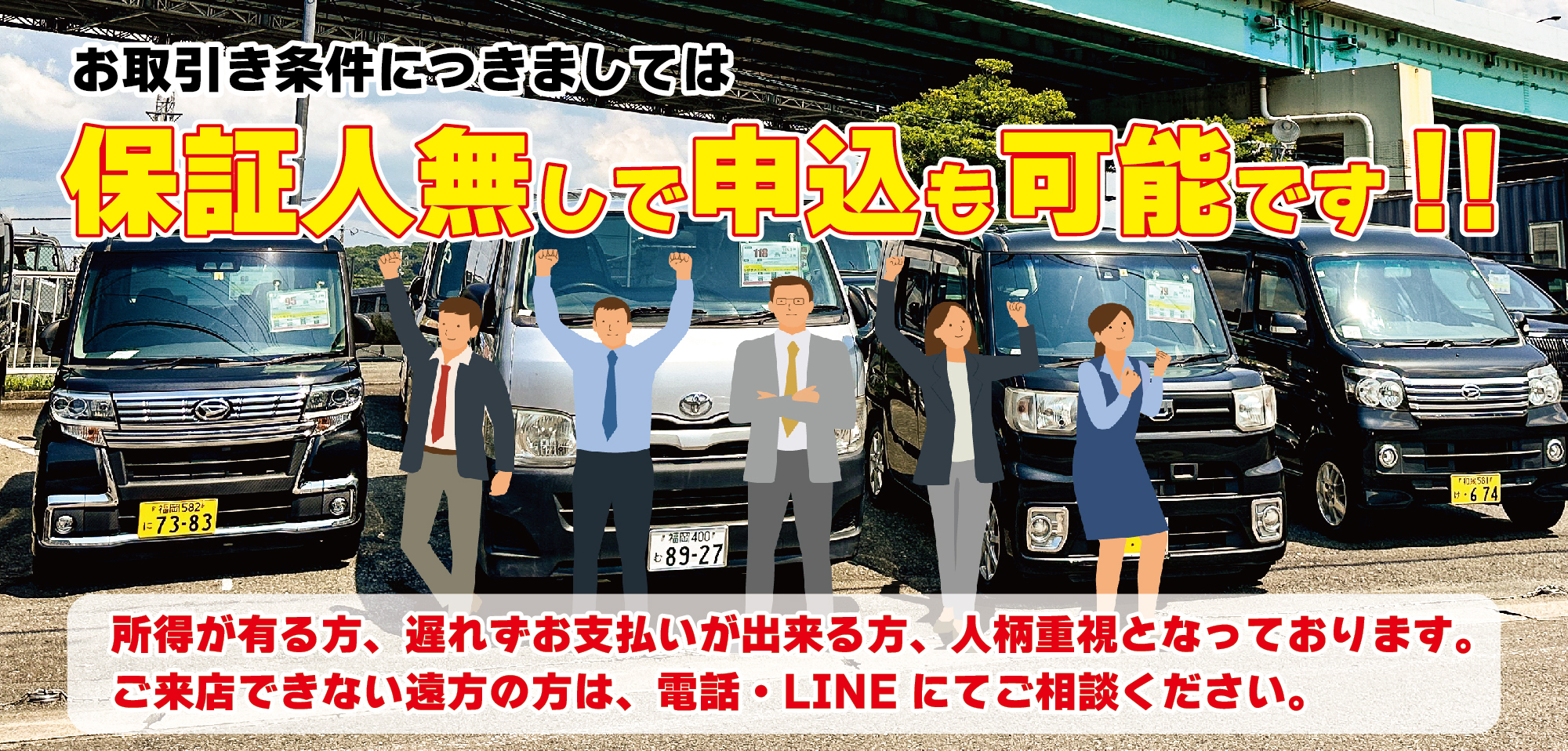 借入の延滞中や破産、債務整理、過払い請求、特定調停などの場合も独自の審査で対応可能!過去のトラブルは過去として考え、今購入できるよう一生懸命審査いたします。